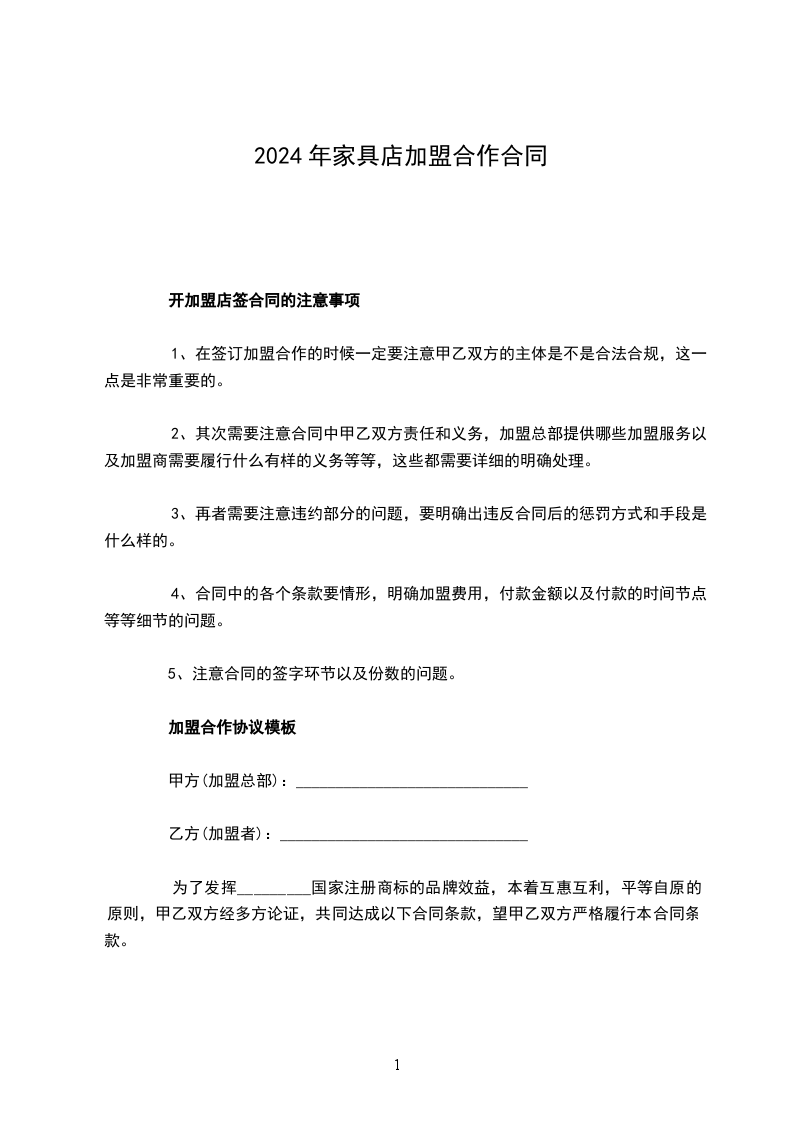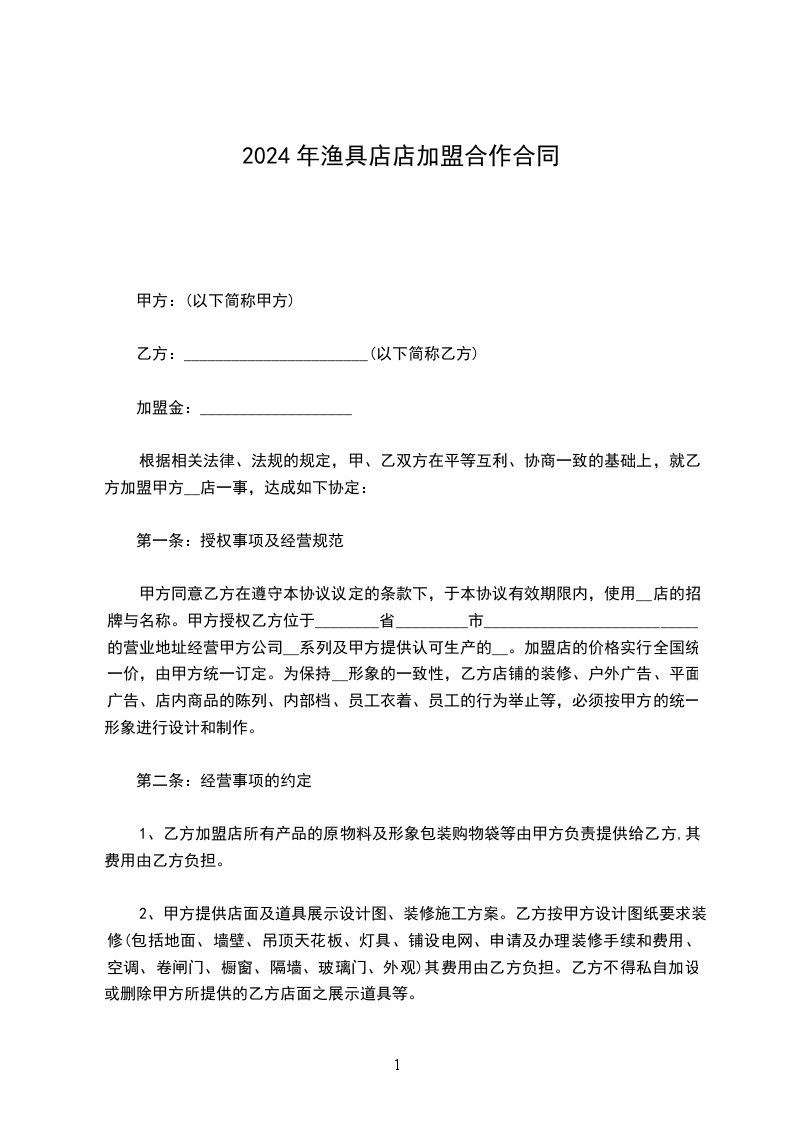根据相关法律、法规的规定,甲、乙双方在平等互利、协商一致的基础上,就乙方加盟甲方__店一事,达成如下协定:
