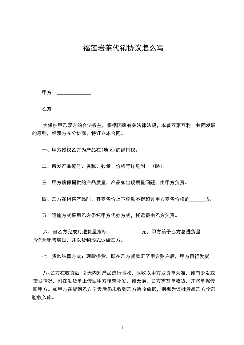六、当乙方完成月进货量指标______________元,甲方给予乙方总进货量_______%作为销售奖励,并以货物形式返给乙方。