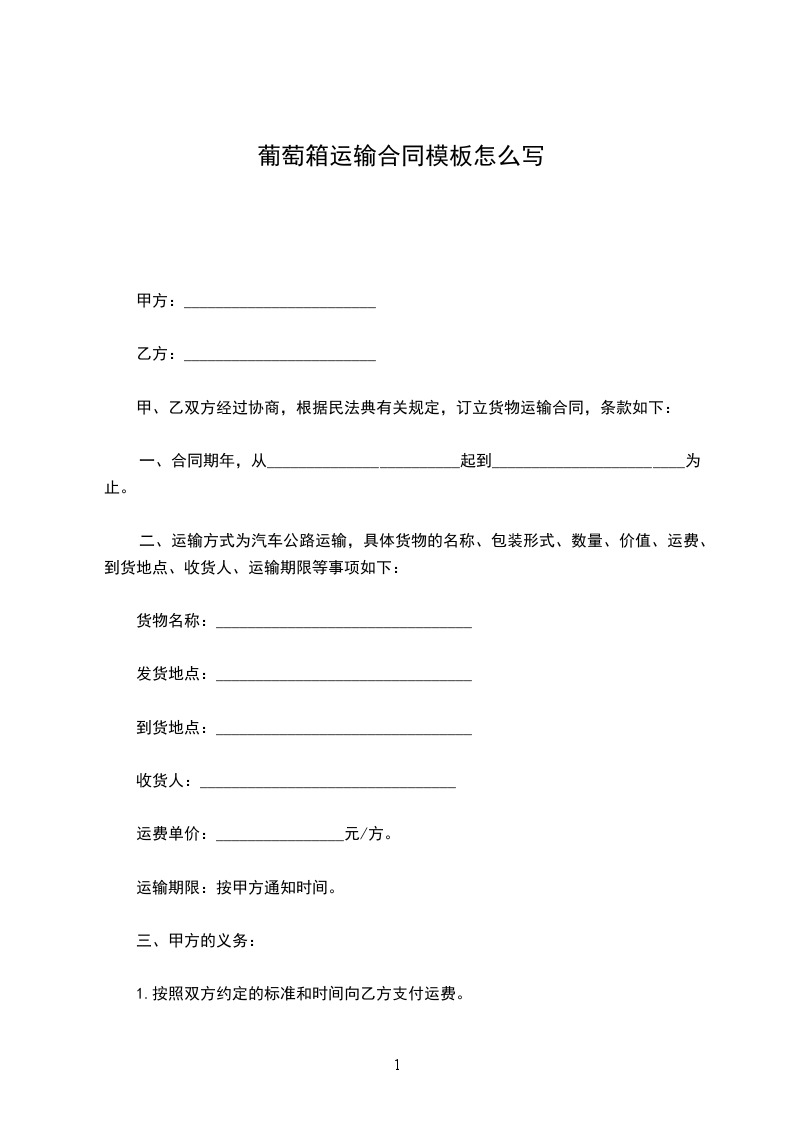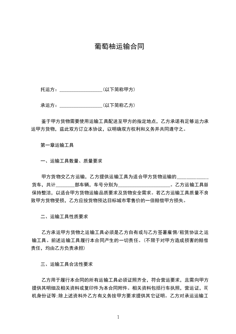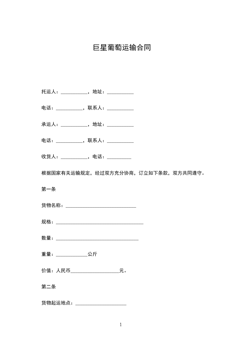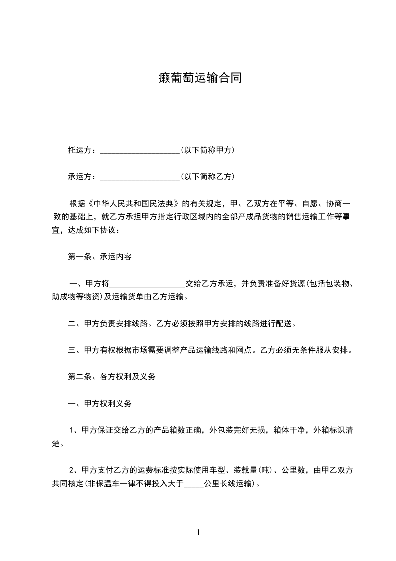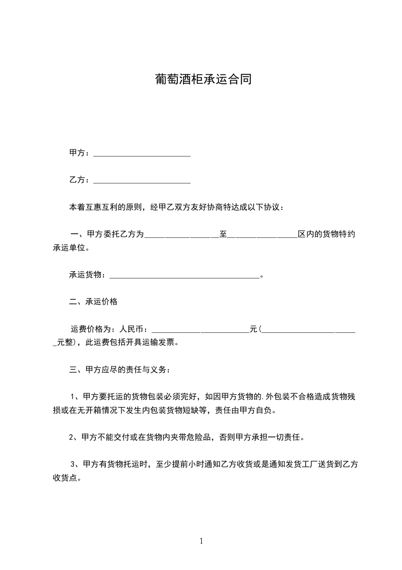 甲方委托乙方运输由_____________________到_____________________,经甲乙双方协商,自愿达成如下协议: