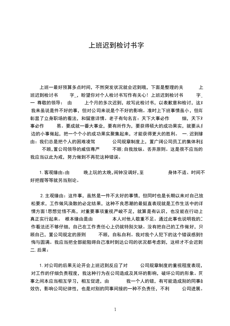 上班迟到保证书。此外,我也看到了这件事的恶劣影响,如果在工作中,大家都像我一样自由散漫,漫不经心,那怎么能及时把工作落实好.做好呢。同时,如果在我们这个集体中形成了这种目无组织纪律观念,不良风气不文明表现,我们工作的提高将无从谈起,服务也只是纸上谈。因此,这件事的后果是严重的,影响是恶劣的。为了严肃法纪,也为了让公司广大员工从此不要再走我的老路犯下如我一样的罪行,我衷心希望公司全体员工以我为反面教材,拿我做一面黑色的镜子,每天对照自己检查自己,倘能如此,我想今后类似的悲剧就不会再上演。
