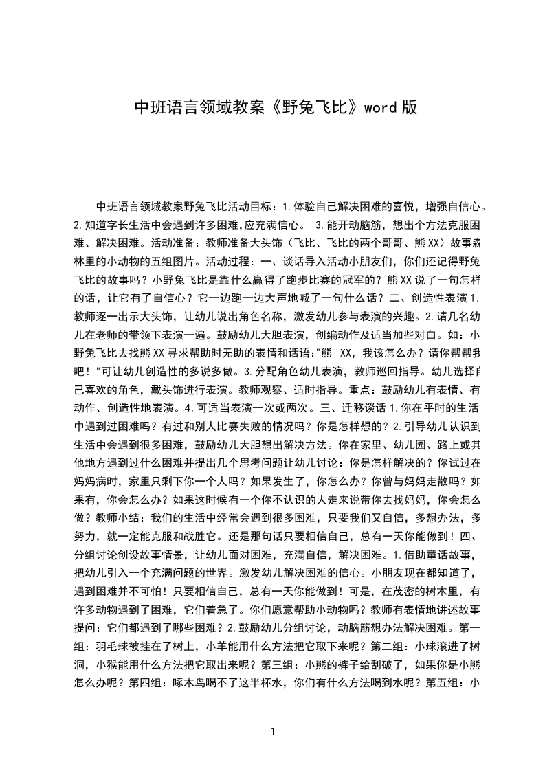 中班语言领域教案野兔飞比活动目标: