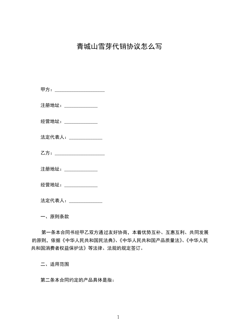 一、甲方授权乙方为产品在(地区)的经销权。