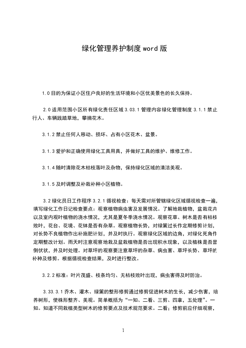 2.0适用范围小区所有绿化责任区域3.03.1管理内容绿化管理制度3.1.1禁止行人、车辆践踏草地,攀摘花木。