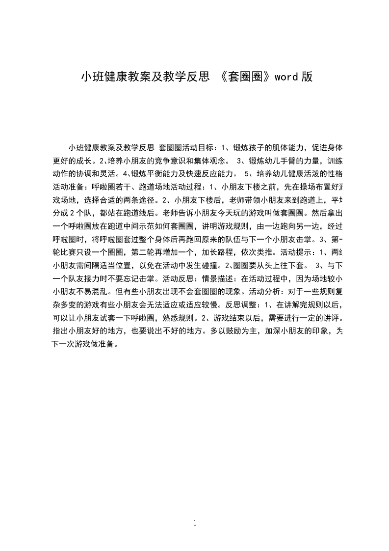 3、与下一个队友接力时不要忘记击掌。活动反思:情景描述:在活动过程中,因为场地较小,小朋友不易混乱。但有些小朋友出现不会套圈圈的现象。活动分析:对于一些规则复杂多变的游戏有些小朋友会无法适应或适应较慢。反思调整: