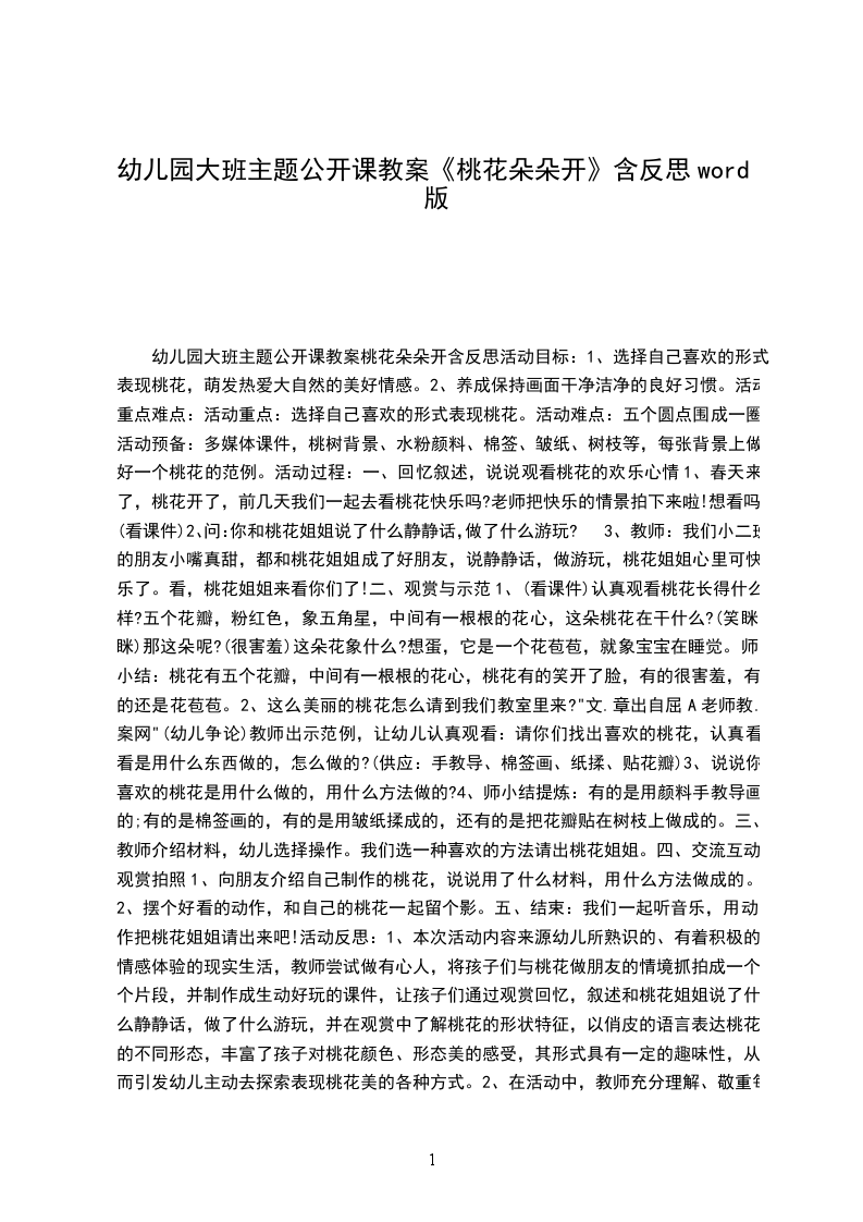 幼儿园大班主题公开课教案桃花朵朵开含反思活动目标:
