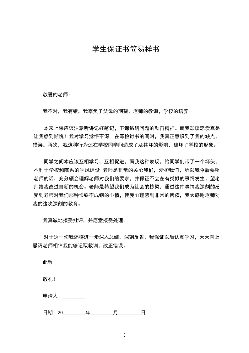 开学之初强调不要逃课到现在,而我对错误的认识不足,导致这样的事情发生。在写这份保证书的同时,我真正意识到了这件事情的严重性和我的错误,违犯了学校规定,再次,我这种行为还在学校同学之间造成了极其坏的影响,破坏了学校的形象。做为学生本应该听从老师教导,服从老师的安排,尊师重教。而我这种表现,给同学们带了一个坏头,不利于学校学风建设老师是多么关心我们。爱护我们!而我却给老师找烦恼,添麻烦,所以我今后要遵守学校规定,听老师的话,充分领会理解老师对我的要求,并保证不会(有类似)的事情发生.希望老师给我改过自新的机会.通过这件事情我深刻的感受到老师对我这种败坏学风的行为心情,使我心理感到非常的愧疚,我太感谢老师对我这次深刻的教育。
