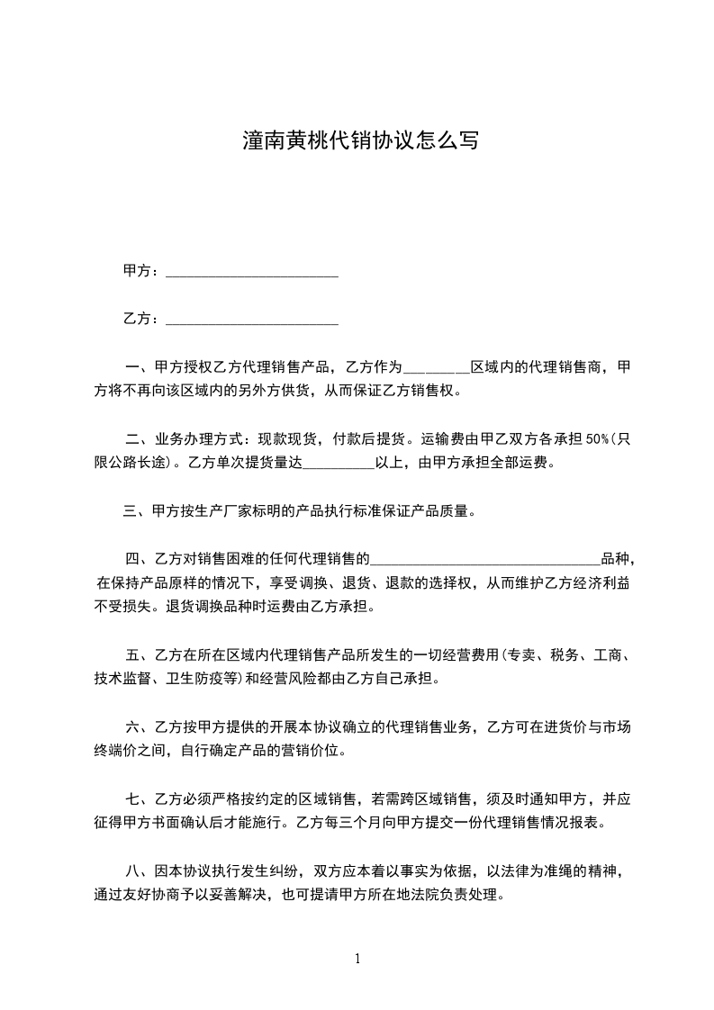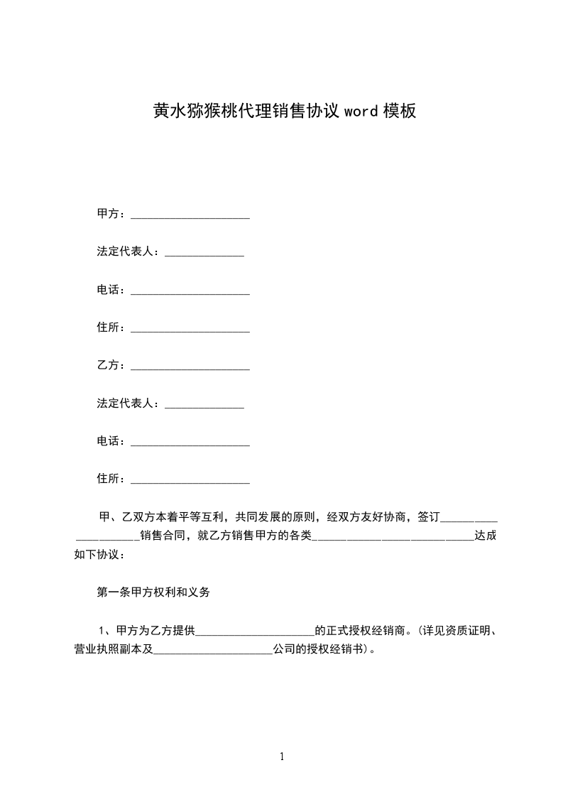一、甲方授权乙方为产品在(地区)的经销权。