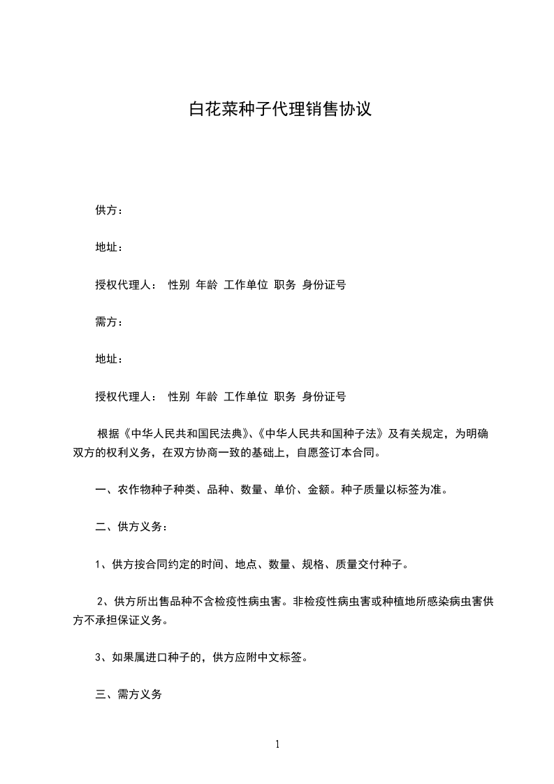 根据《中华人民共和国民法典》、《中华人民共和国种子法》及有关规定,为明确双方的权利义务,在双方协商一致的基础上,自愿签订本合同。