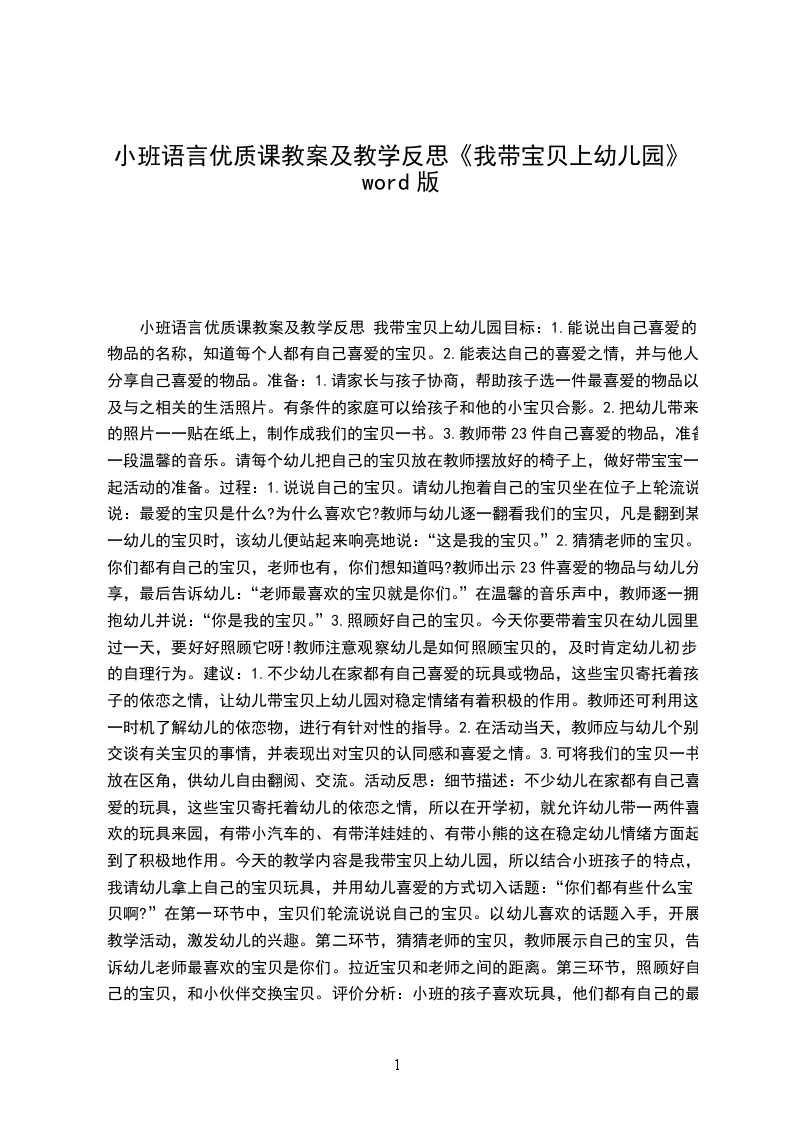 1.请家长与孩子协商,帮助孩子选一件最喜爱的物品以及与之相关的生活照片。有条件的家庭可以给孩子和他的小宝贝合影。