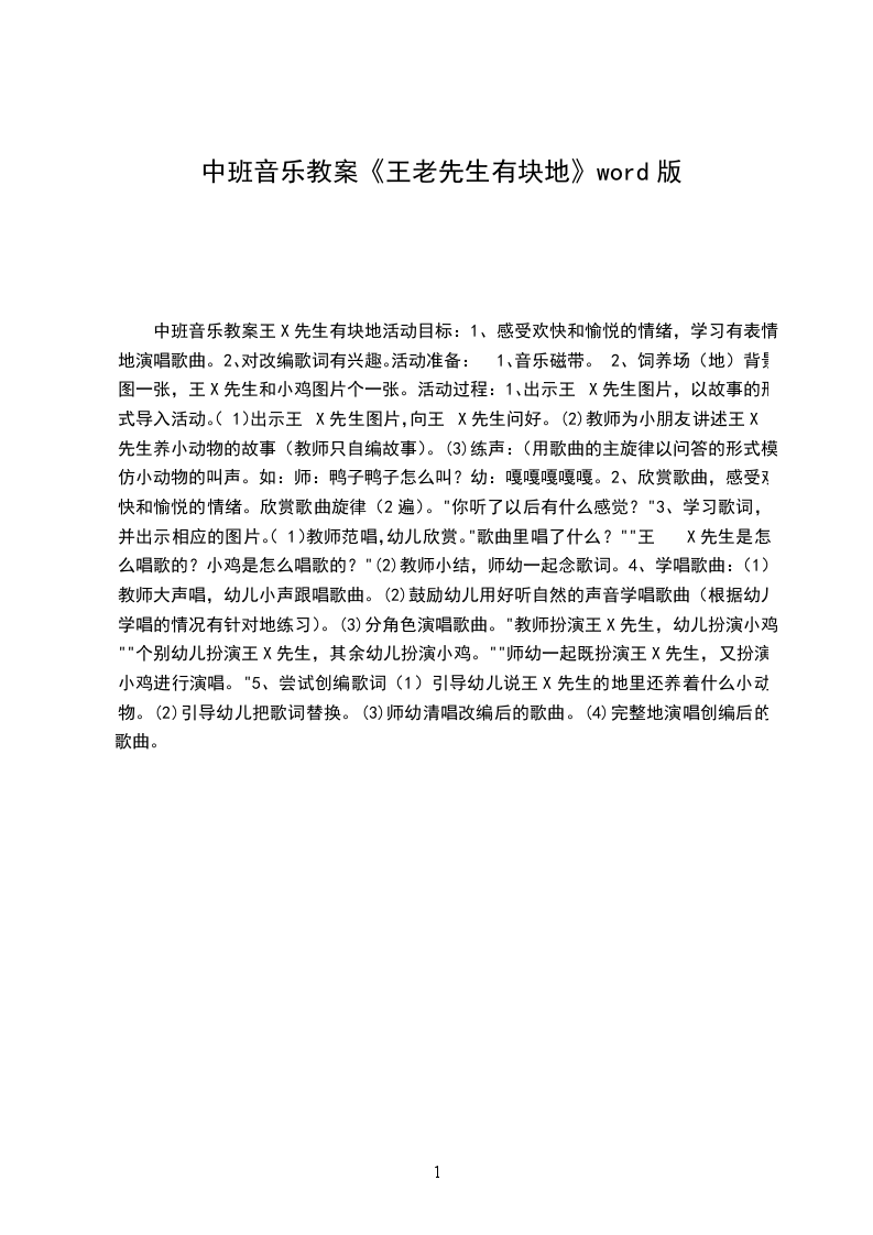 (1)教师范唱,幼儿欣赏。"歌曲里唱了什么?""王X先生是怎么唱歌的?小鸡是怎么唱歌的?"