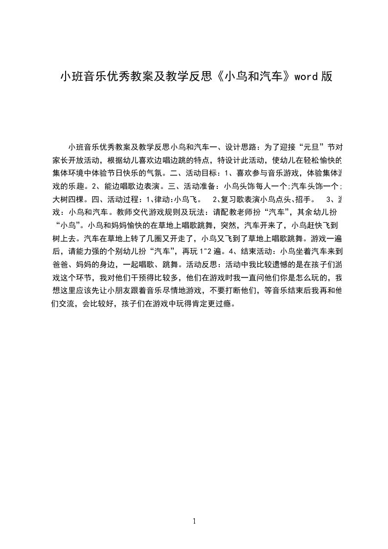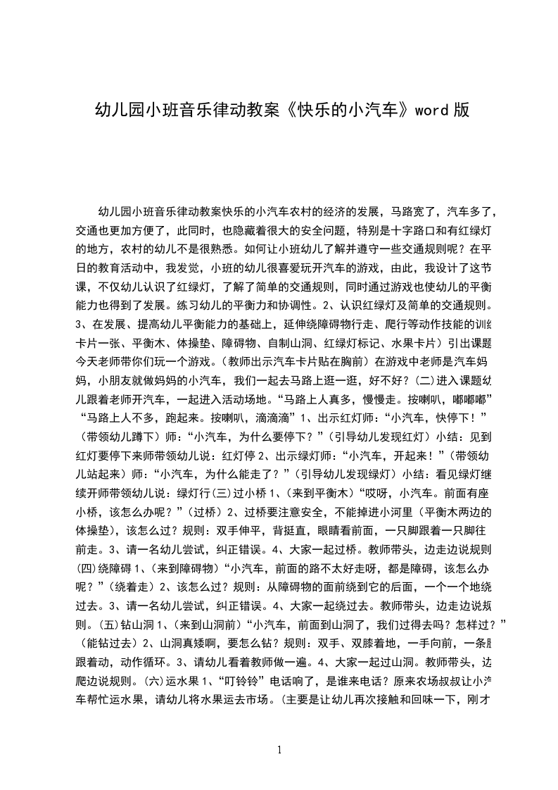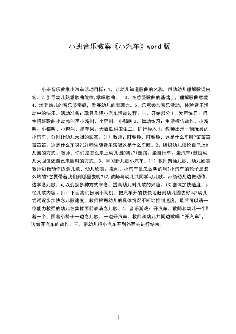 5、乐意参加音乐活动,体验音乐活动中的快乐。活动准备:玩具几辆小汽车