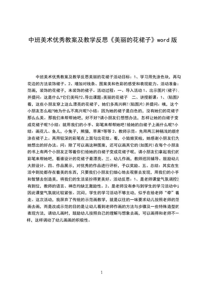 中班美术优秀教案及教学反思美丽的花裙子活动目标: