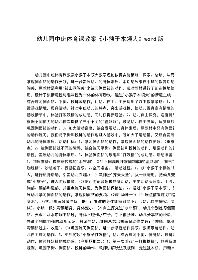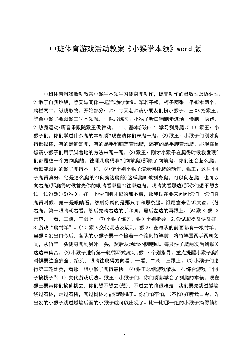 幼儿园大班体育活动教案小猴学本领活动目标: