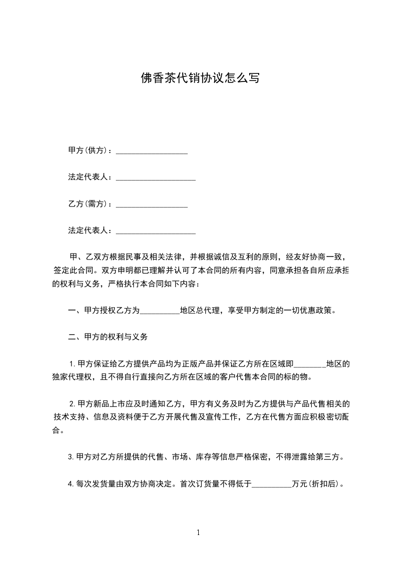 一、甲方授权乙方代理销售____________________________产品,乙方作为_________区域内的代理销售商,甲方将不再向该区域内的另外方供货,从而保证乙方独家销售权。
