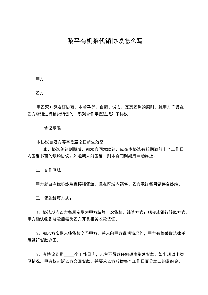 黎平有机茶代销协议怎么写