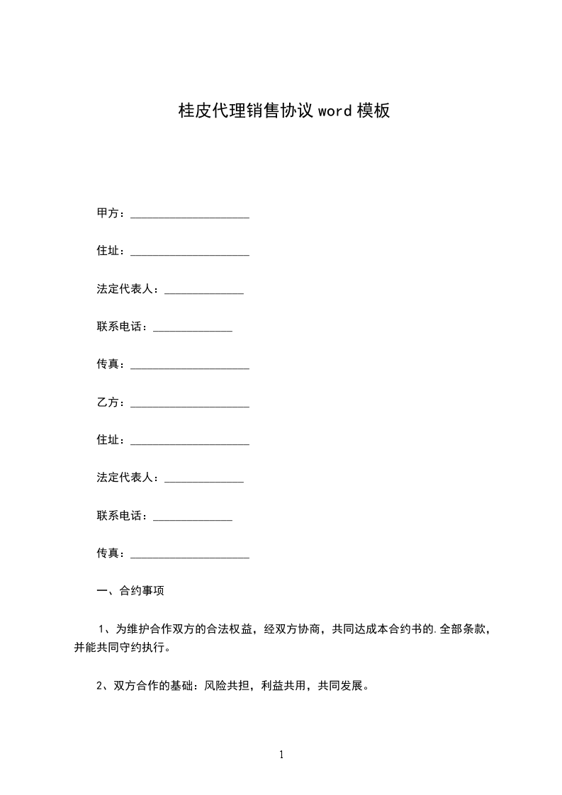 香桂代理销售协议word模板