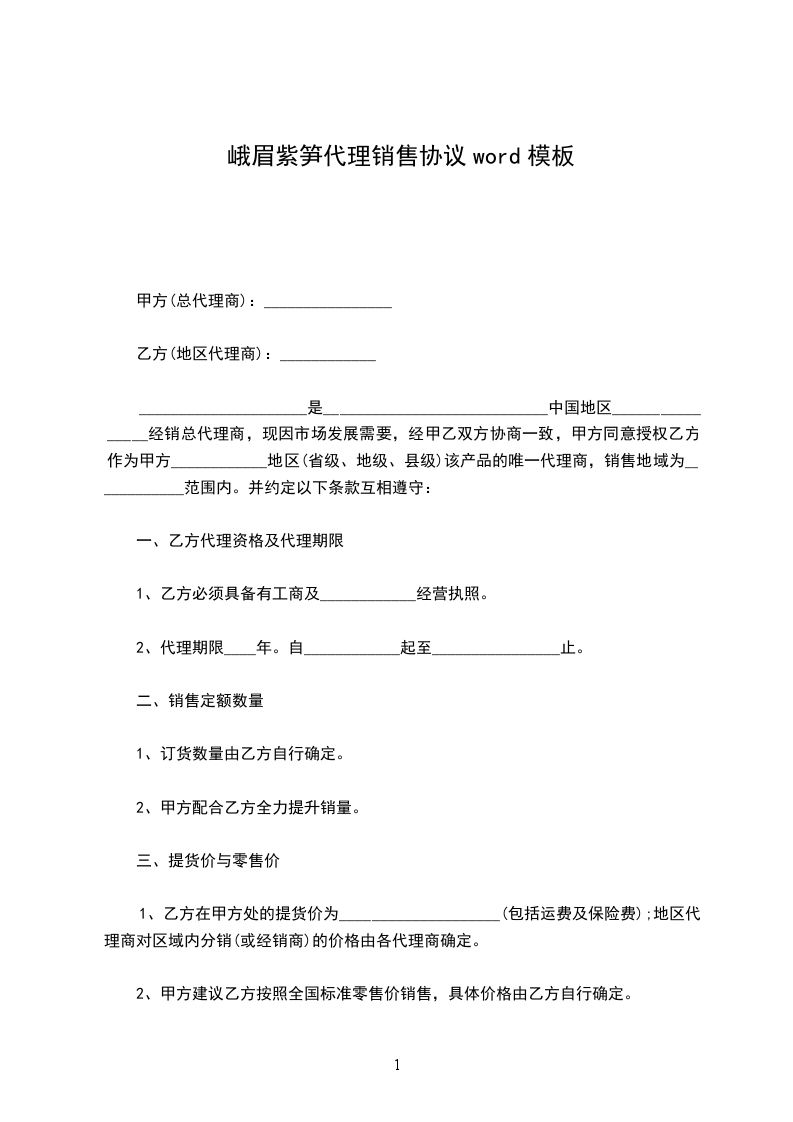 _____________________是____________________________中国地区________________经销总代理商,现因市场发展需要,经甲乙双方协商一致,甲方同意授权乙方作为甲方____________地区(省级、地级、县级)该产品的唯一代理商,销售地域为____________范围内。并约定以下条款互相遵守: