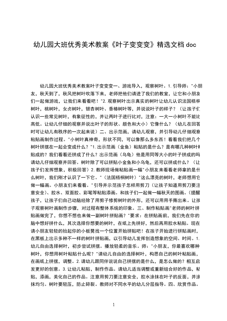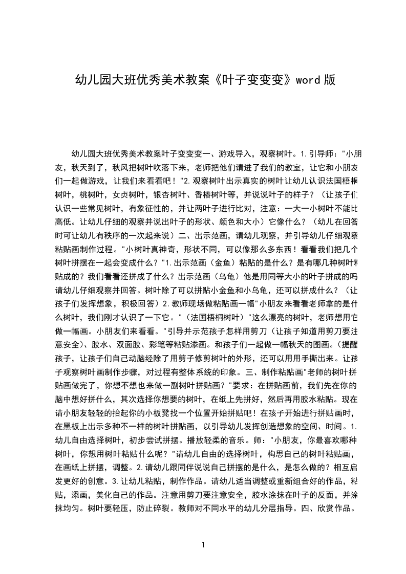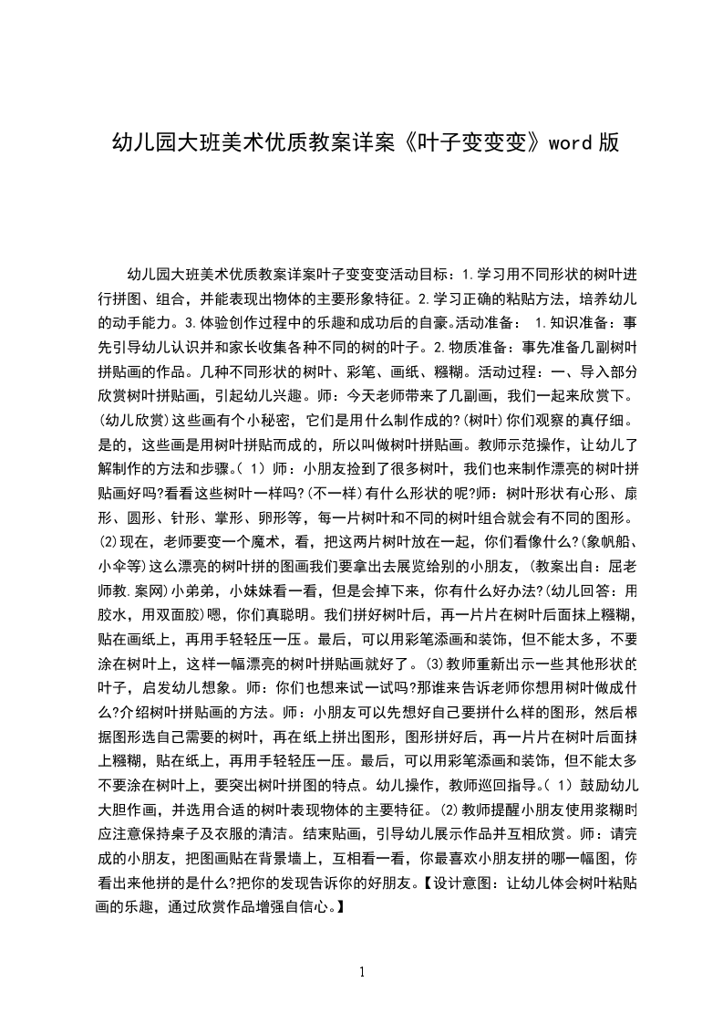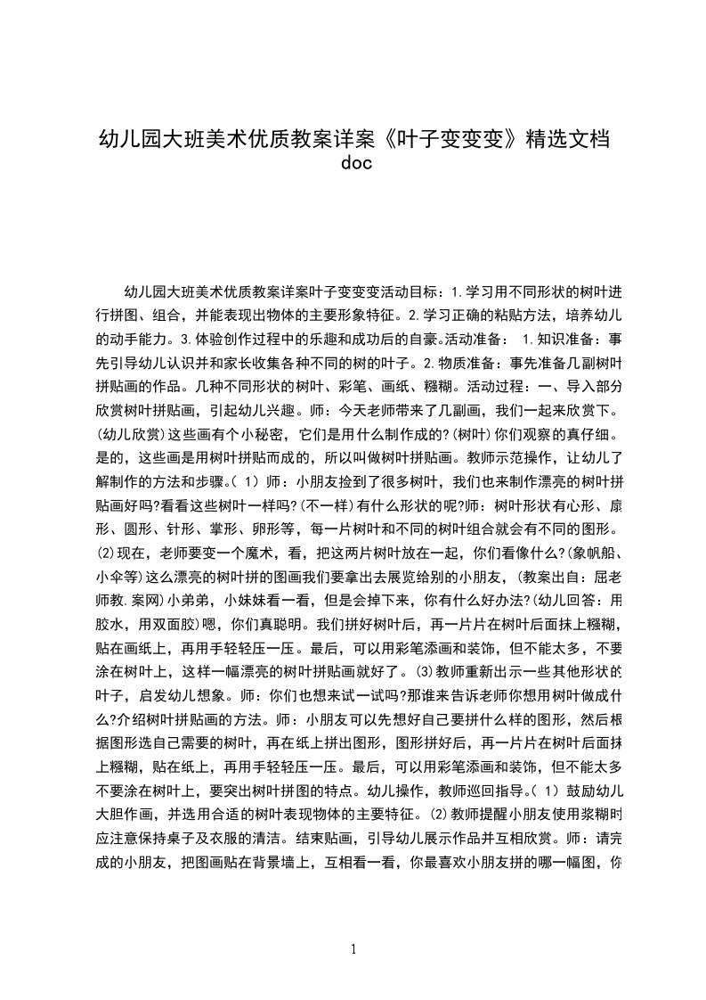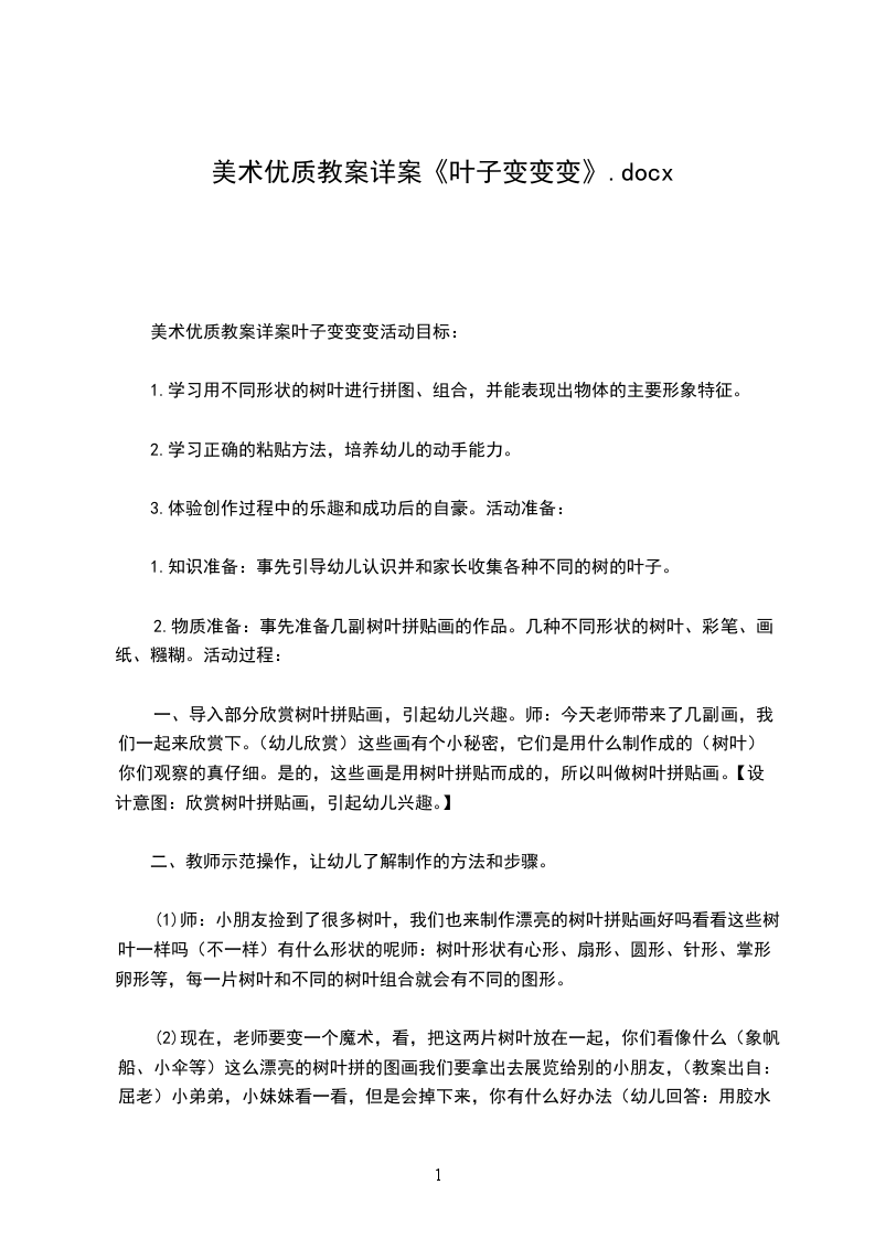 二、出示范画,请幼儿观察,并引导幼儿仔细观察粘贴画制作过程。"小树叶真神奇,形状不同,可以像那么多东西!看看我们把几个树叶拼摆在一起会变成什么?"