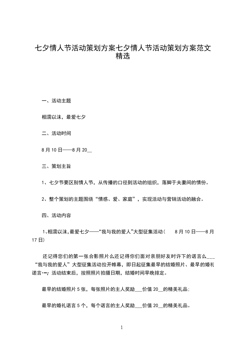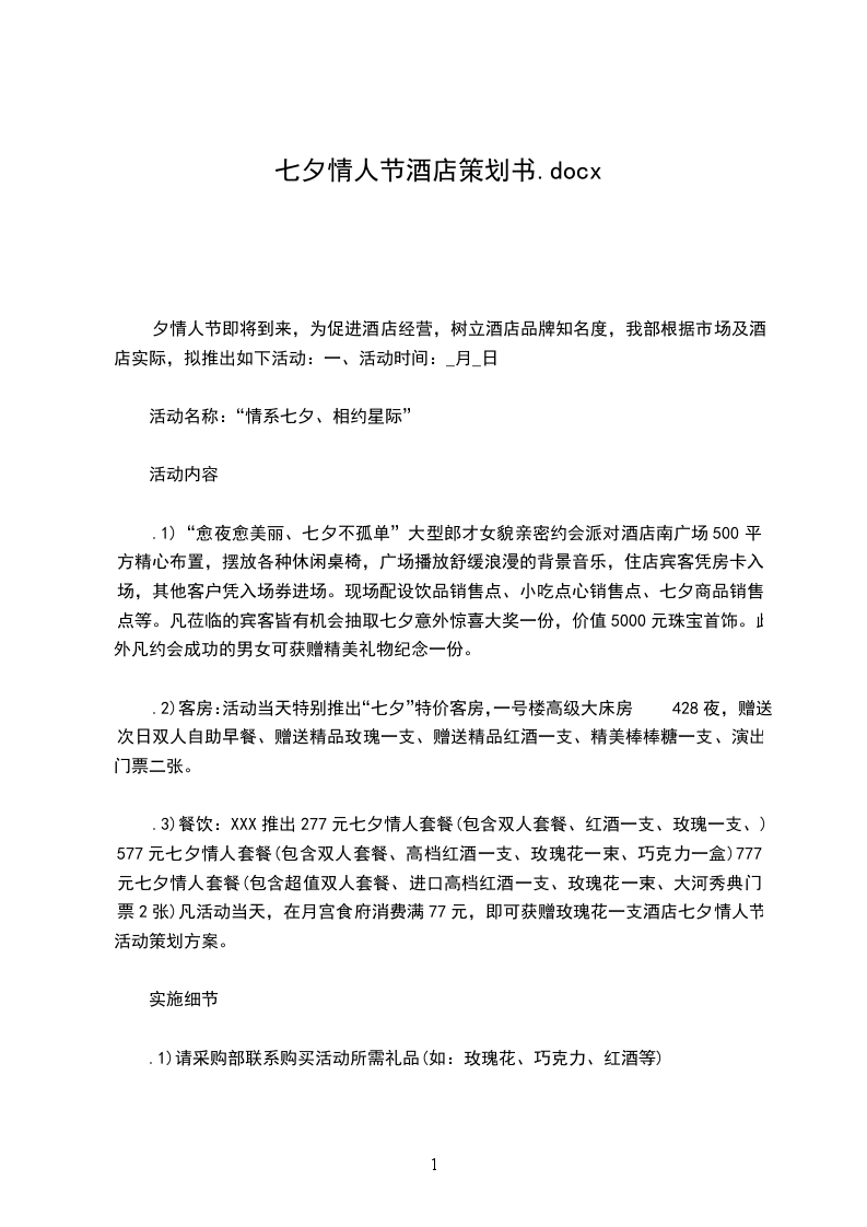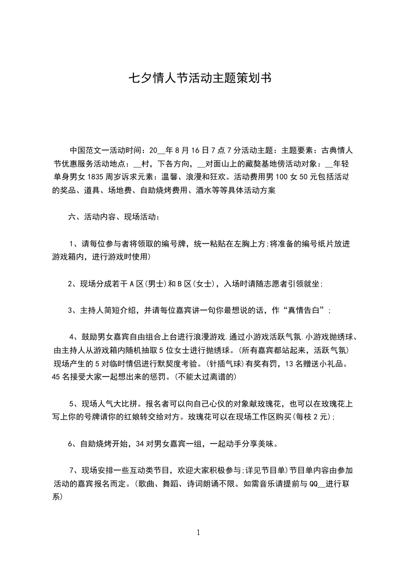 七夕情人节活动筹划书____七夕情人节活动筹划书