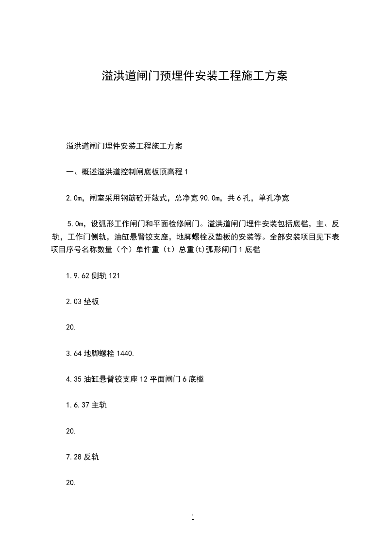 _____批准:审核:编制:1闸门技术特性序号名称特性1孔口形式潜没式2孔口净宽