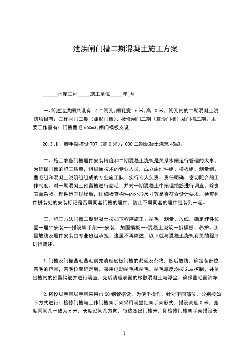 7.2整体充水试验:将泄洪洞事故闸门沉放到底,泄洪洞弧形闸门开启,排出闸室内水后,进入闸室内进行目视检查,对水封止水位置,充水阀排水孔位置进行漏水检查。任意1M长止水范围内漏水量每秒钟不超过0.1L为合格。8施工协调泄洪洞事故闸门检修施工过程中,电站需配专人进行现场监督及联络工作,闸门的启闭工作由电站工作人员进行配合操作。9工期进度工期进度自人员、材料、设备进场后30日内完成10安全、文明生产和环保措施