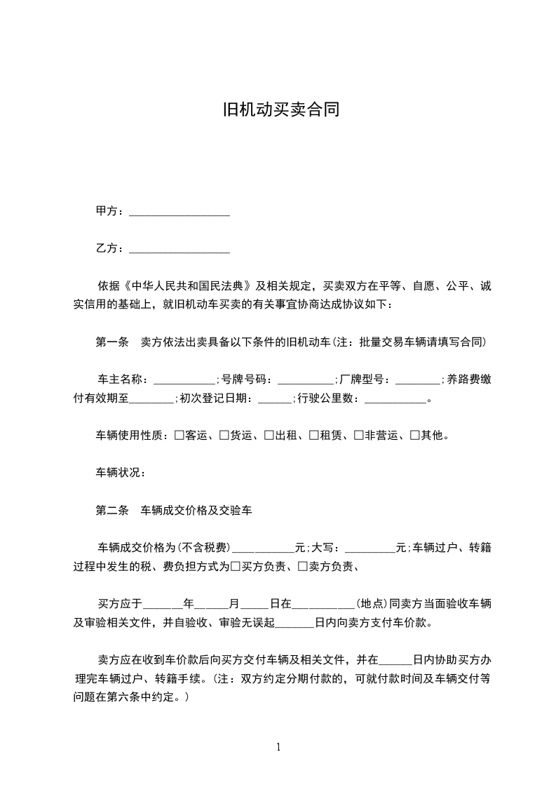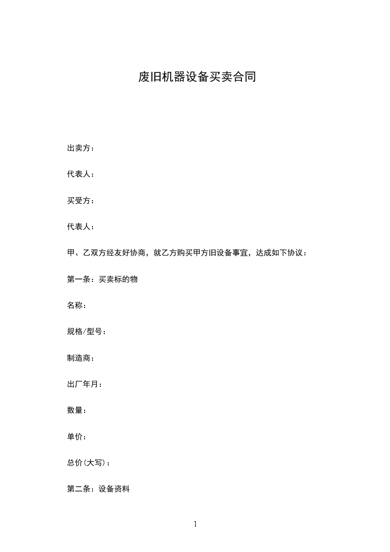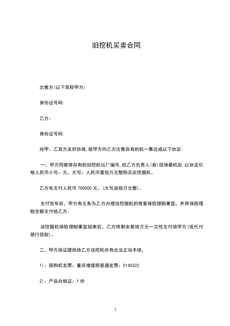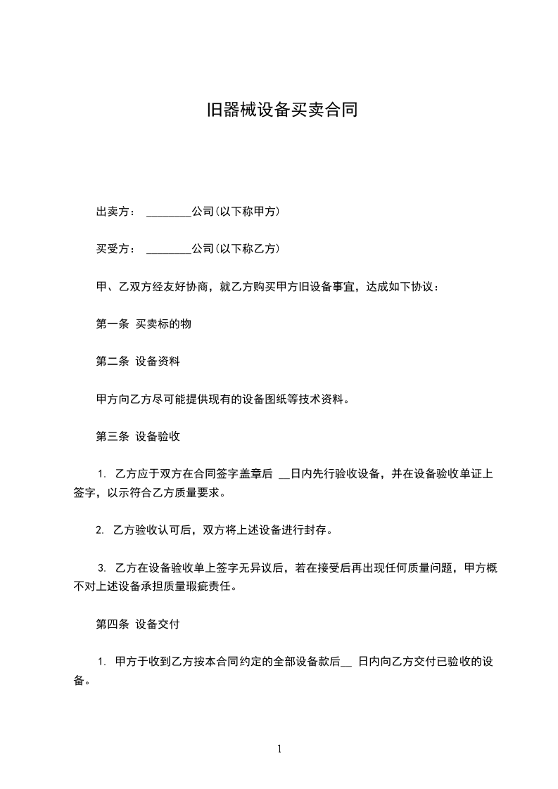 (7)甲方在自己的场地上负责将该机设备安全装上乙方的运输车上。保证乙方顺利离开,乙方将一次性付清余款,该机产权属乙方所有。