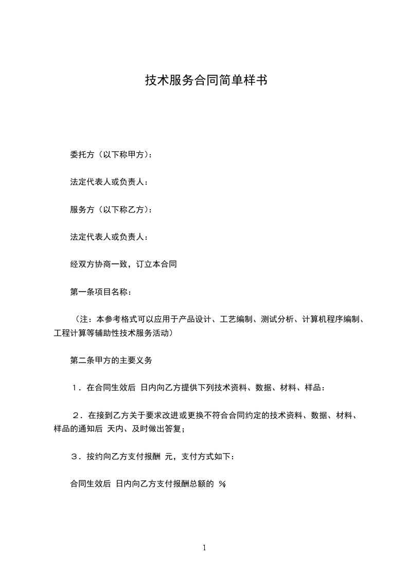 1.在 年 月 日前完成技术服务工作;