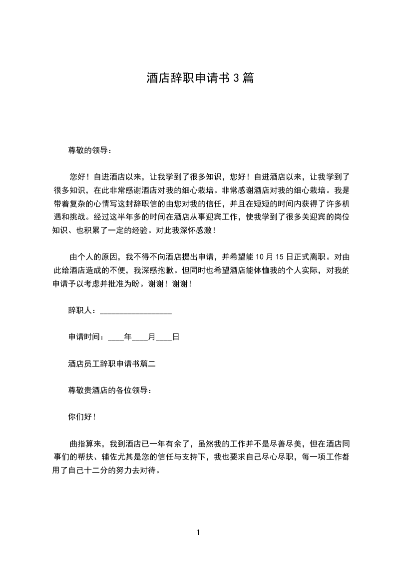你好!在酒店工作一段时间酒店的业务知识及专业知识已经基本掌握,但俗话说“学无止境”,有很多方面还是需不断学习。提出辞职我想了很久。酒店的环境对服务员很照顾很保护(至少对我们的个人利益来说)。鉴我的个性要在酒店自我提升及成长或是我自身完善都是突破的难点。虽然我的观念是:人需要不断的发展、进步、完善。酒店员工辞职报告。我也一直在努力改变,变得适应环境,以便更好的发挥自己的作用。但是我觉得自己一直没什么突破,考虑了很久,确定了需要变换环境来磨砺。