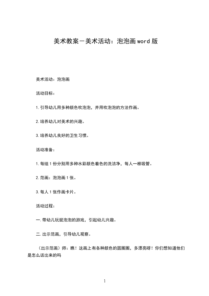小班美术优秀教案泡泡吹画设计思路:小班幼儿很喜欢吹泡泡,没事的时候总喜欢在嘴里玩着泡泡沫,但是这是很脏的一个行为,教师说了很久都没有效果;还有个别小朋友把周日买的吹泡泡玩具带到了幼儿园,她们都很感兴趣,还告诉我他们会追着阳光下的彩色泡泡跑来跑去,兴奋的不得了。是我就抓住了幼儿喜欢吹泡泡的这个兴趣点,何不开展一节吹泡泡的活动。是,我设计了这节美术活动泡泡吹画,让幼儿在吹吹、玩玩、画画中体验美术活动的无穷乐趣,以培养幼儿对色彩的感受力。活动目标: