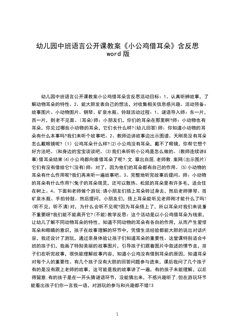幼儿园中班语言公开课教案小公鸡借耳朵含反思活动目标: