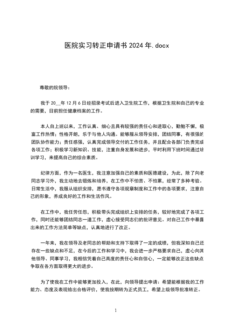 尊敬的医院领导: