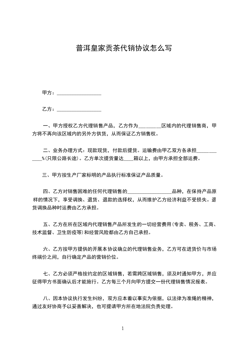 皇室贡茶代销协议怎么写