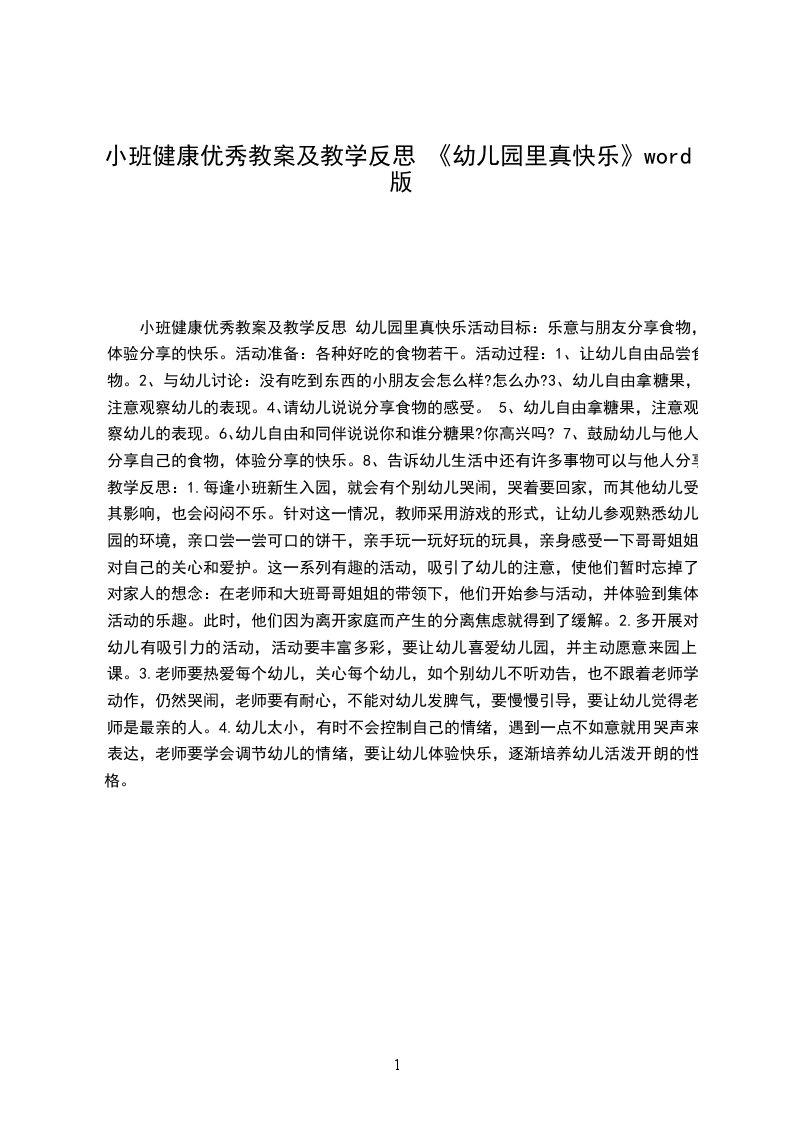 小班健康优秀教案及教学反思 幼儿园里真快乐活动目标:乐意与朋友分享食物,体验分享的快乐。活动准备:各种好吃的食物若干。
