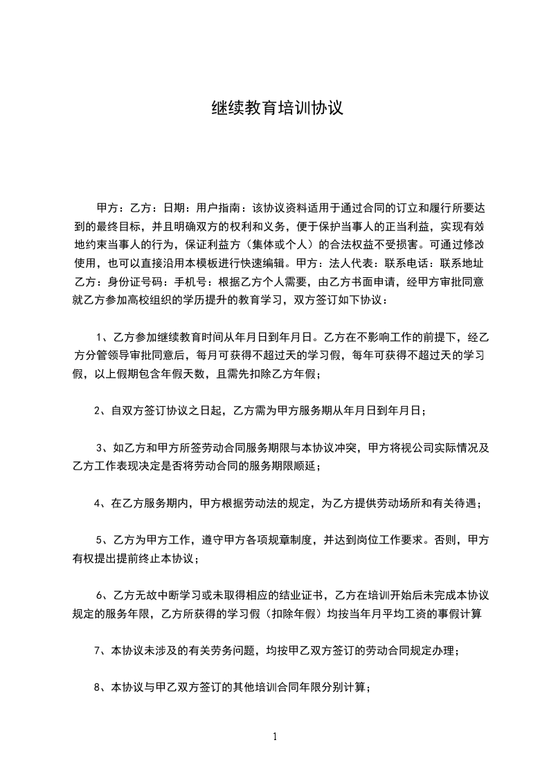 甲方:法人代表:联系电话:联系地址:乙方:身份证号码:手机号:根据乙方个人需要,由乙方书面申请,经甲方审批同意,就乙方参加_高校组织的学历提升的教育学习,双方签订如下协议: