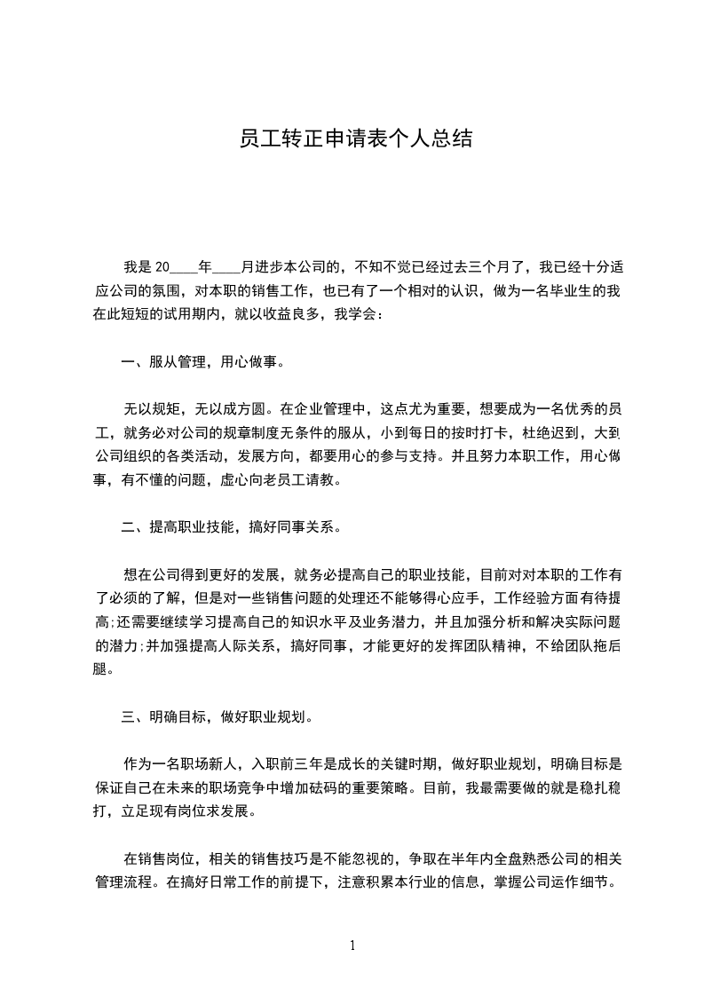 新人申请转正个人工作总结
