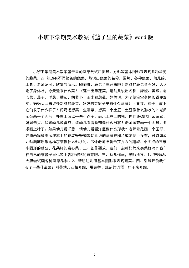 小班下学期美术教案篮子里的蔬菜尝试用圆形、方形等基本图形来表现几种常见的蔬菜。