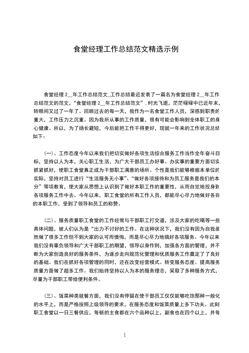 食堂经理2__年工作总结范文_工作总结最近发表了一篇名为食堂经理2__年工作总结范文的范文,“食堂经理2__年工作总结范文”,时光飞逝,茫茫碌碌中已近年末,转眼间又过了一年了。回顾过去的每一天,我作为一名食堂工作人员,深感到职责的重大,工作压力之沉重。因为我所从事的工作质量,很有可能会影响到全体职工的身心健康。所以,为了扬长避短,今后能把工作干得更好,现就一年来的工作状况总结如下: