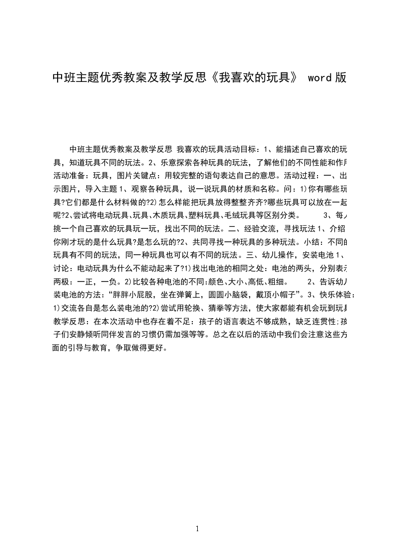 中班主题优秀教案及教学反思 我喜欢的玩具活动目标: