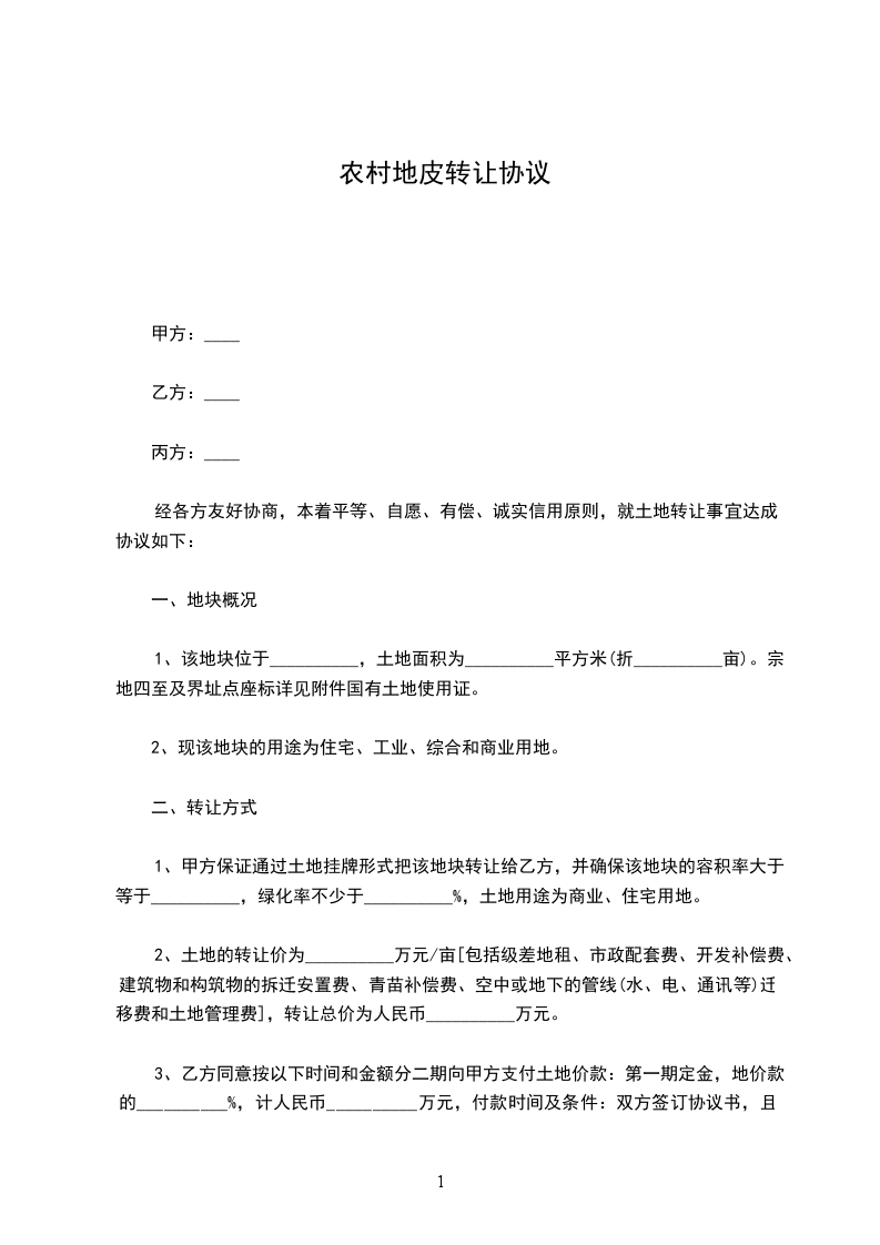 1、甲方保证通过土地挂牌形式把该地块转让给乙方,并确保该地块的容积率大于等于__________,绿化率不少于__________%,土地用途为商业、住宅用地。