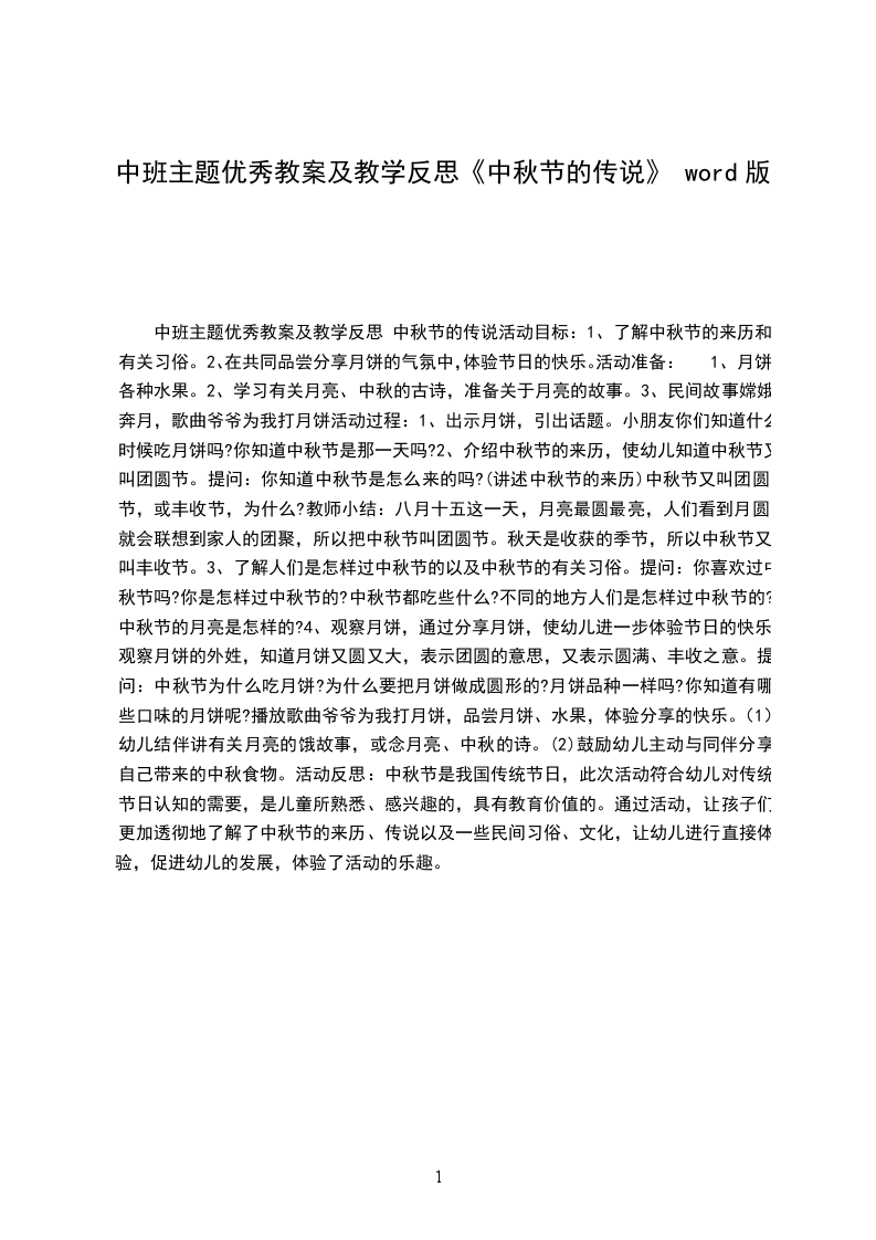 中班主题优秀教案及教学反思 中秋节的传说活动目标:
