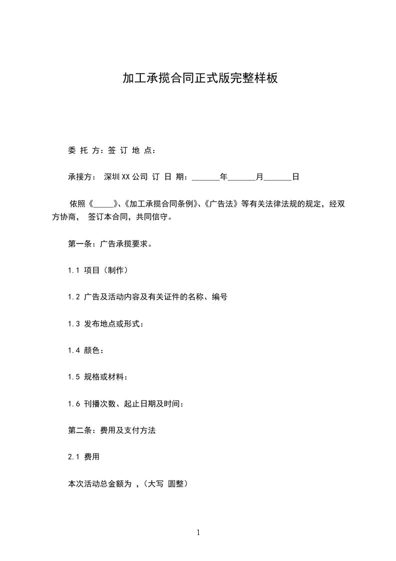 依照《_____》、《加工承揽合同条例》、《广告法》等有关法律法规的规定,经双方协商, 签订本合同,共同信守。