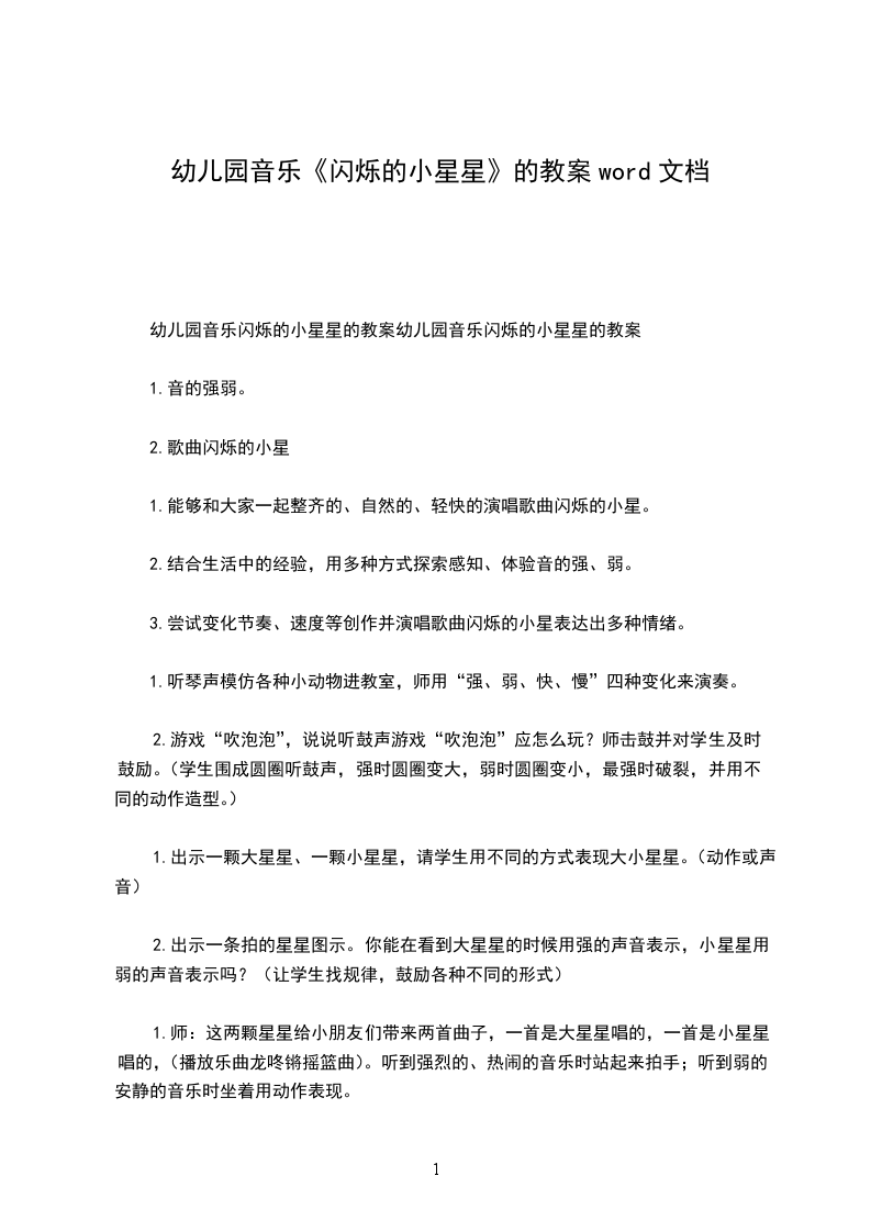 小班音乐优质课教案及教学反思 闪烁的星星活动目标: