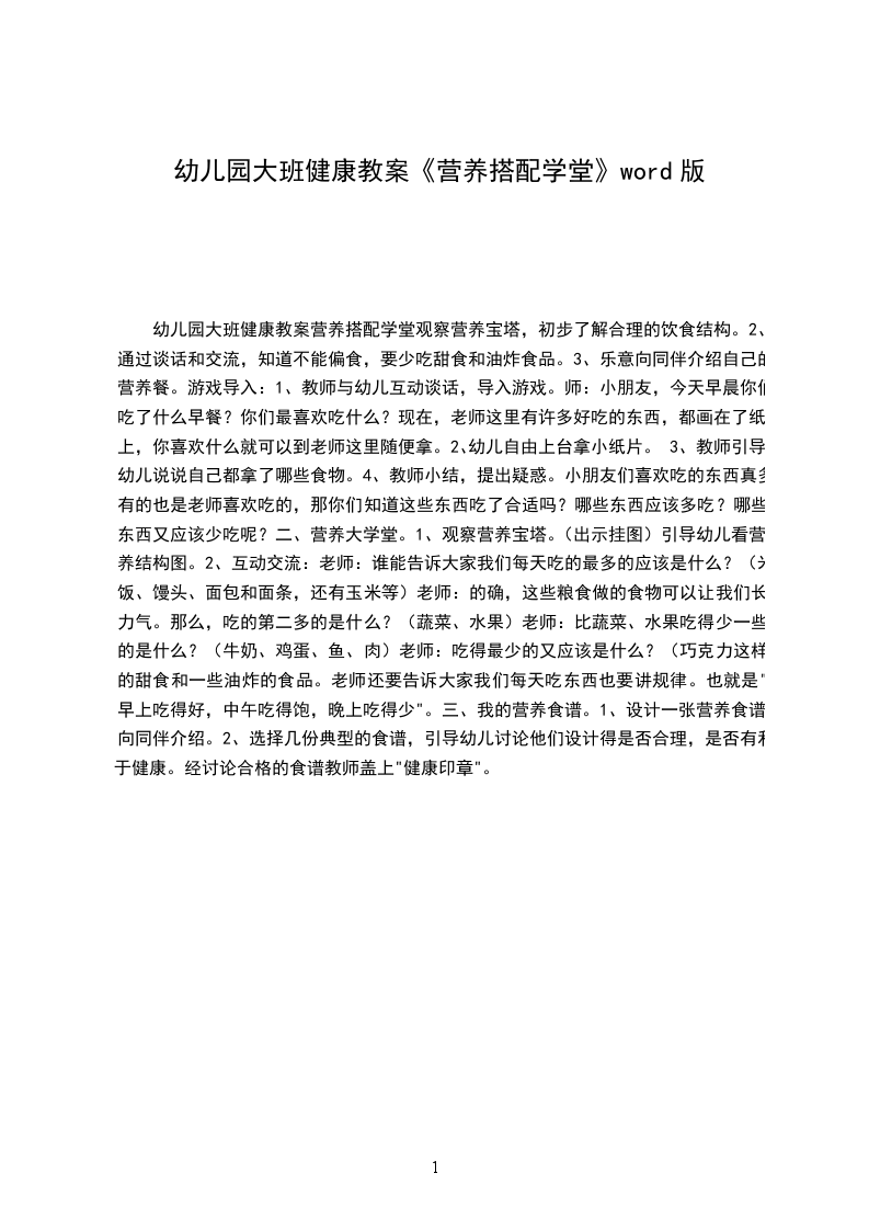 幼儿园大班健康教案营养搭配学堂观察营养宝塔,初步了解合理的饮食结构。