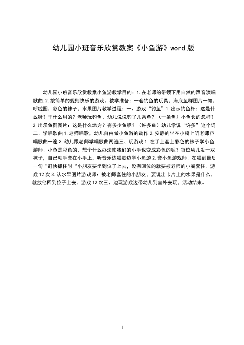 幼儿园小班音乐欣赏教案小鱼游教学目的: