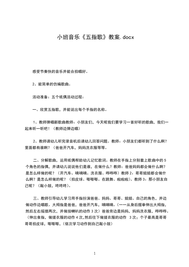 1.根据教师的提示,伸出相应的手指"大拇指是爸爸,爸爸旁边是妈妈,个子最高是哥哥,哥哥旁边是姐姐,小小指头就是我。"教师边说边观察幼儿的手指是否正确伸出。