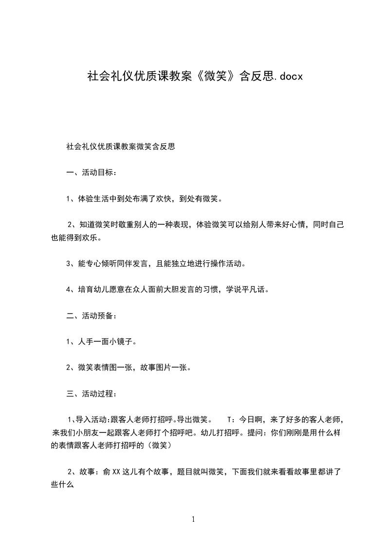 幼儿园中班社会礼仪优质课教案微笑含反思
