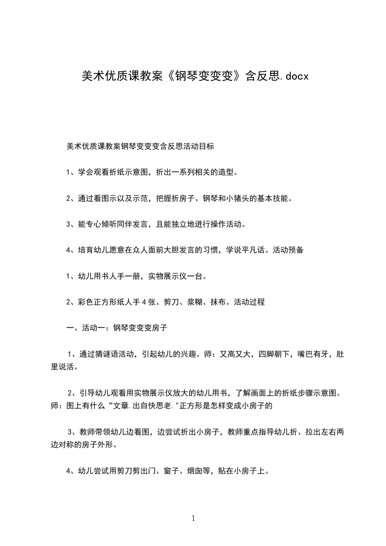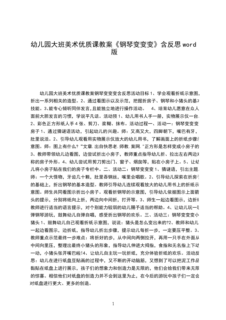 幼儿园大班美术优质课教案钢琴变变变含反思活动目标