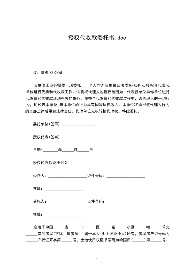 授权代收款委托书2