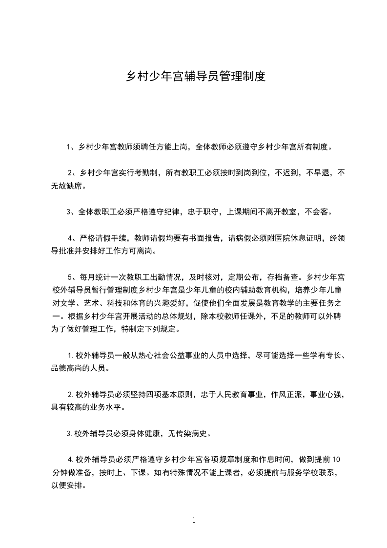 2、乡村少年宫实行考勤制,所有教职工必须按时到岗到位,不迟到,不早退,不无故缺席。