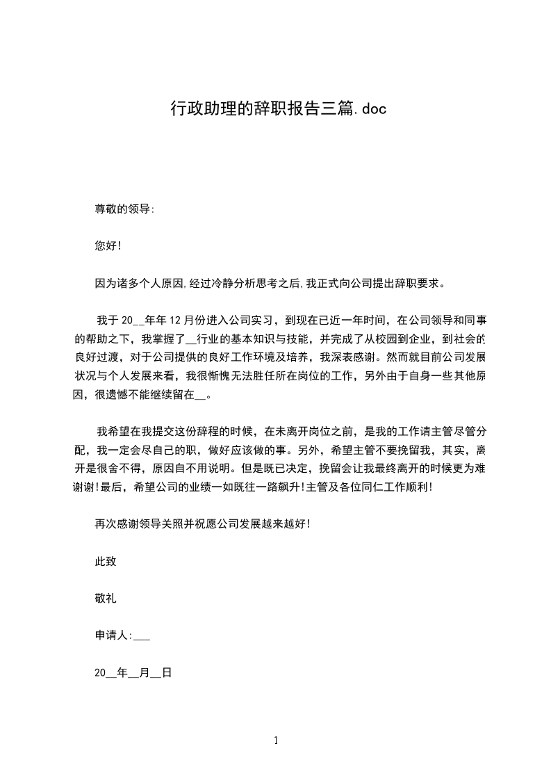 行政助理的辞职报告篇3